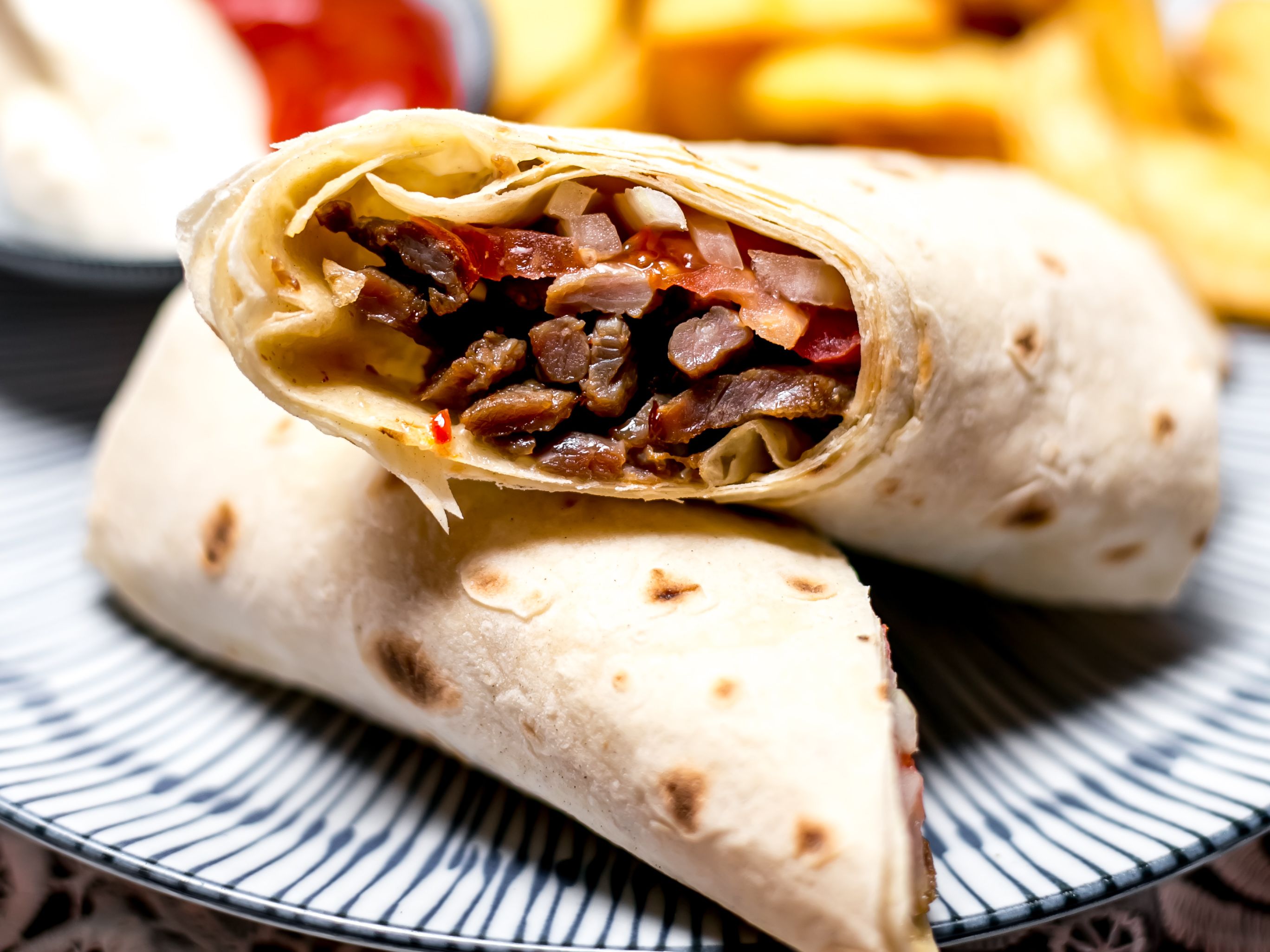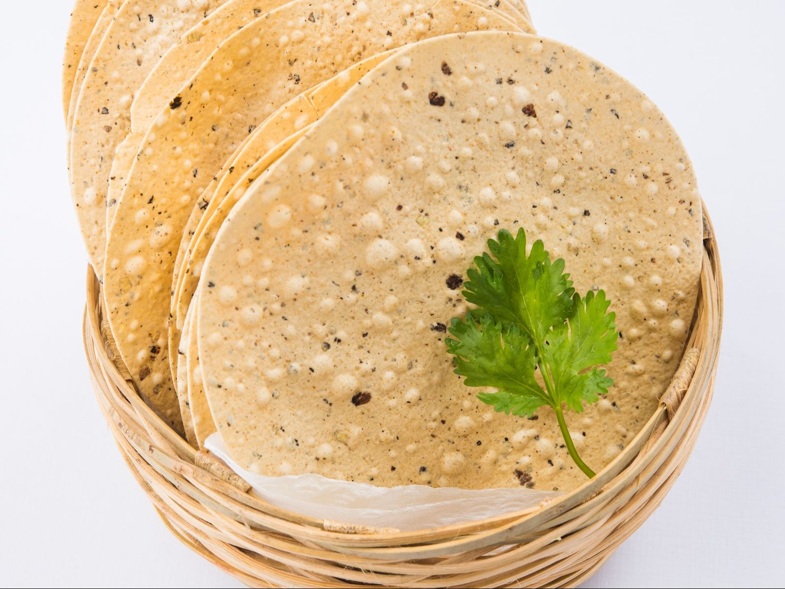 Thin crispy wheat and rice crepe stuffed with onions