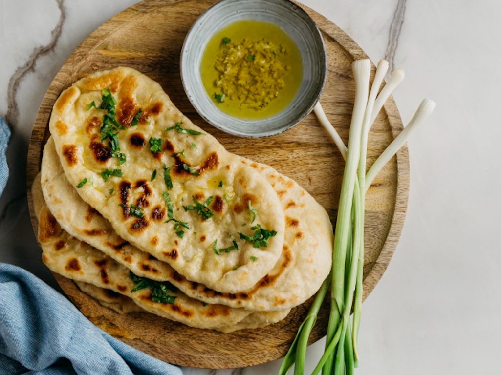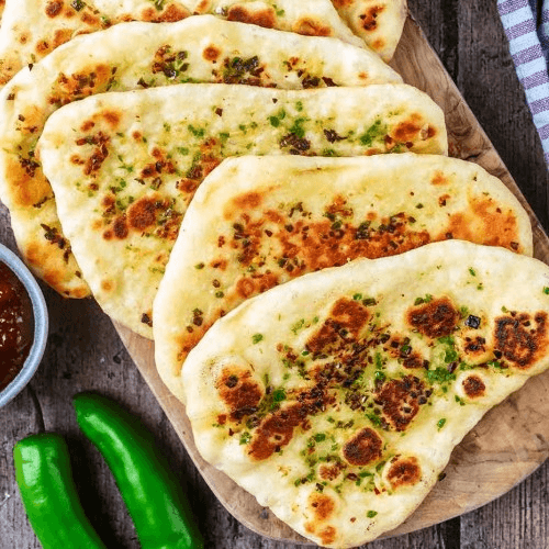 Indian bread stuffed in garlic and cilantro baked in tandoor