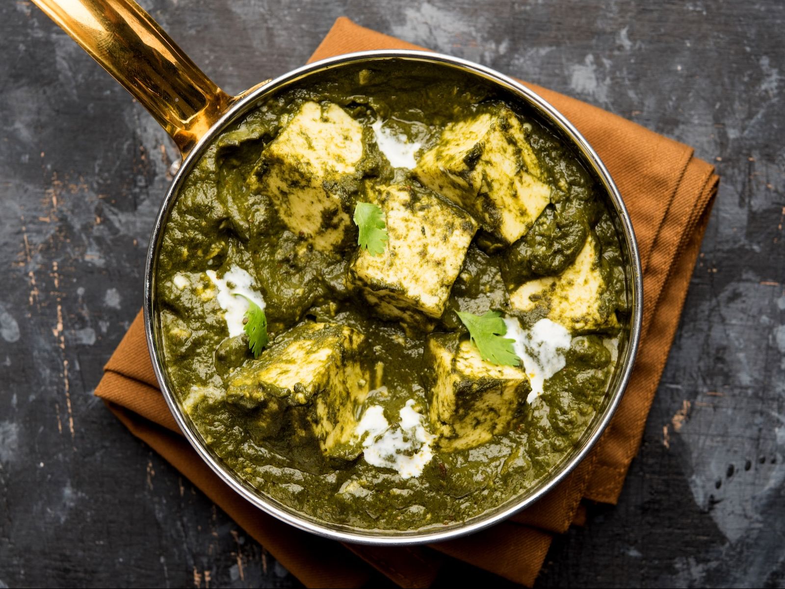 Fresh cottage cheese cubes cooked in spinach gravy. Served with white rice