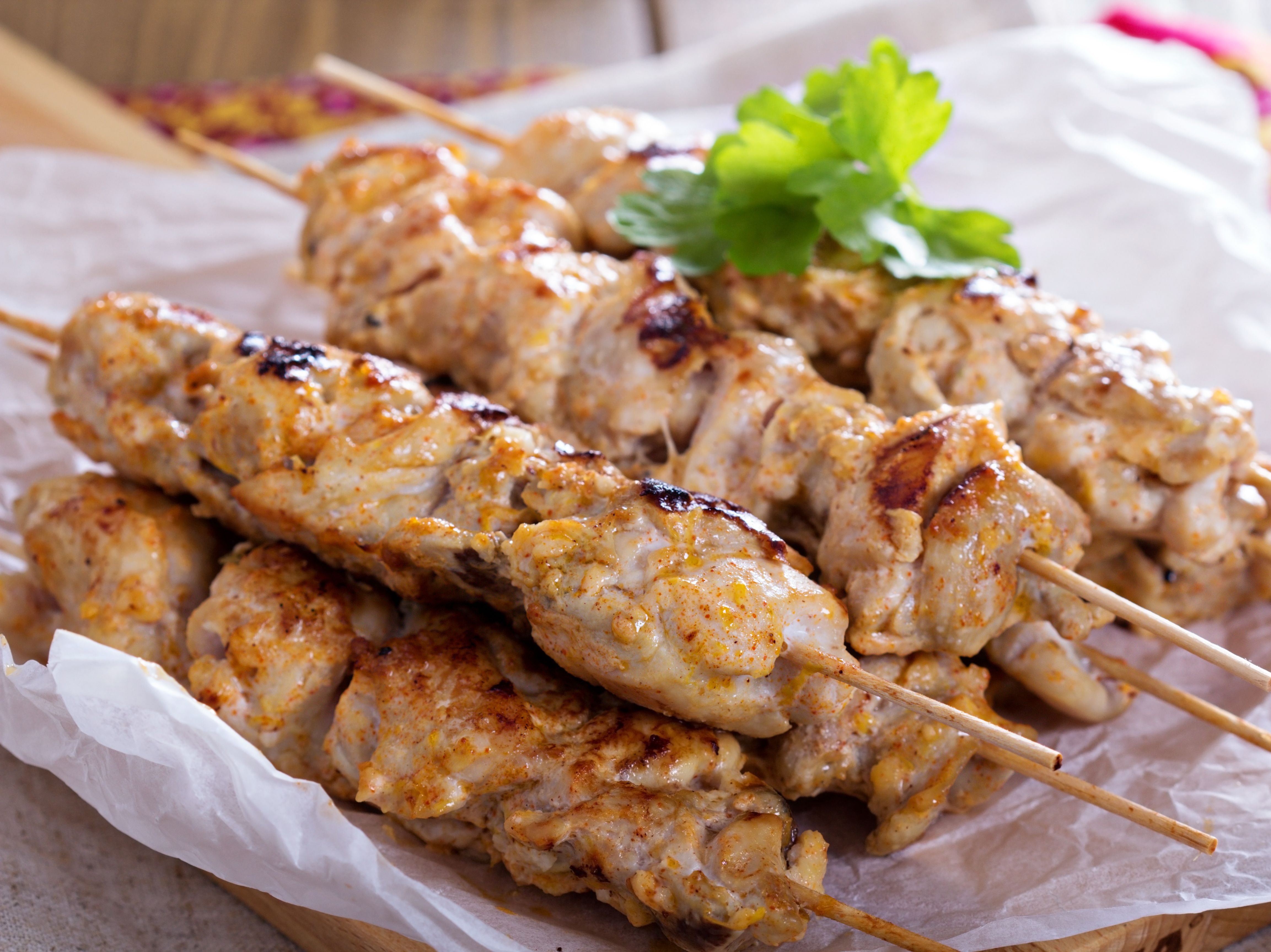 Marinated lamb cooked on skewer in clay oven