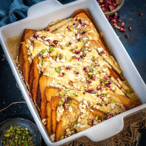 Multi layered bread tossed with egg