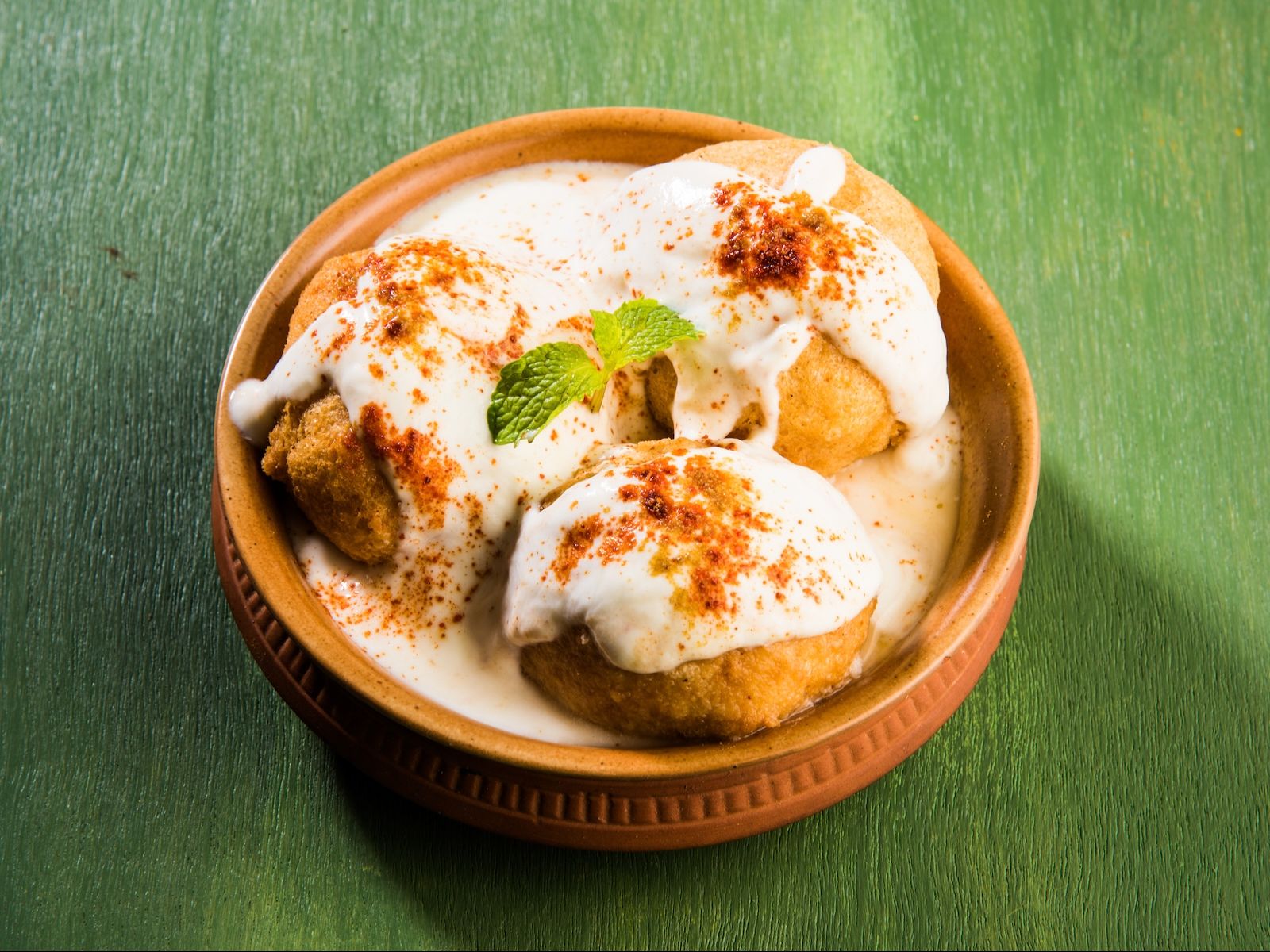 Fried lentil donuts with lentil soup & chutney