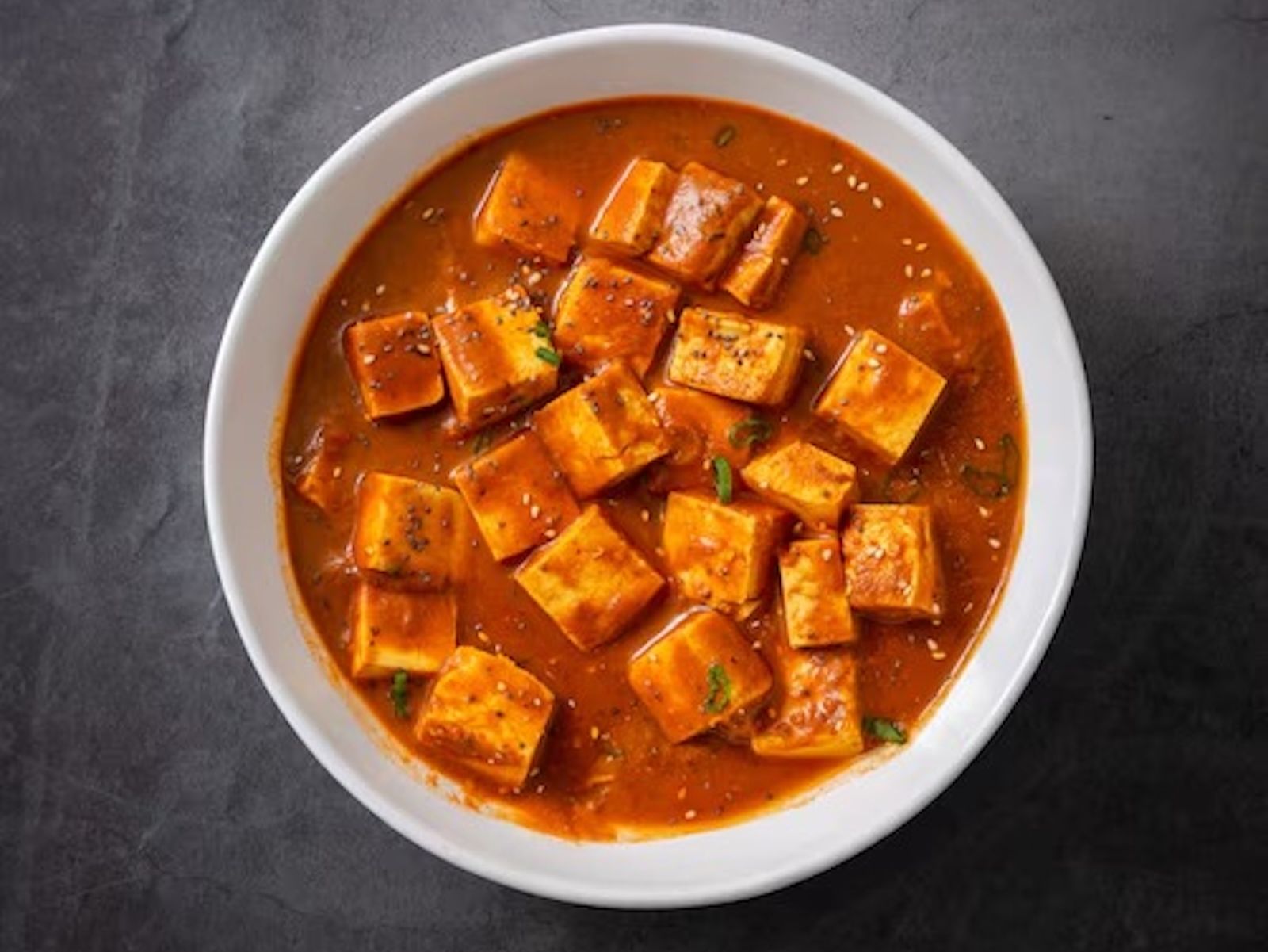 Fresh cottage cheese simmered in creamy tomato sauce. Served with white rice
