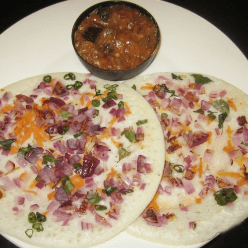 Rice & lentil battered pancake with onion toppings