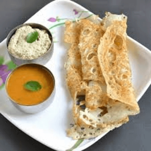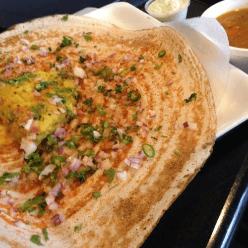Thin crispy wheat & rice crepe stuffed with onions & potatoes