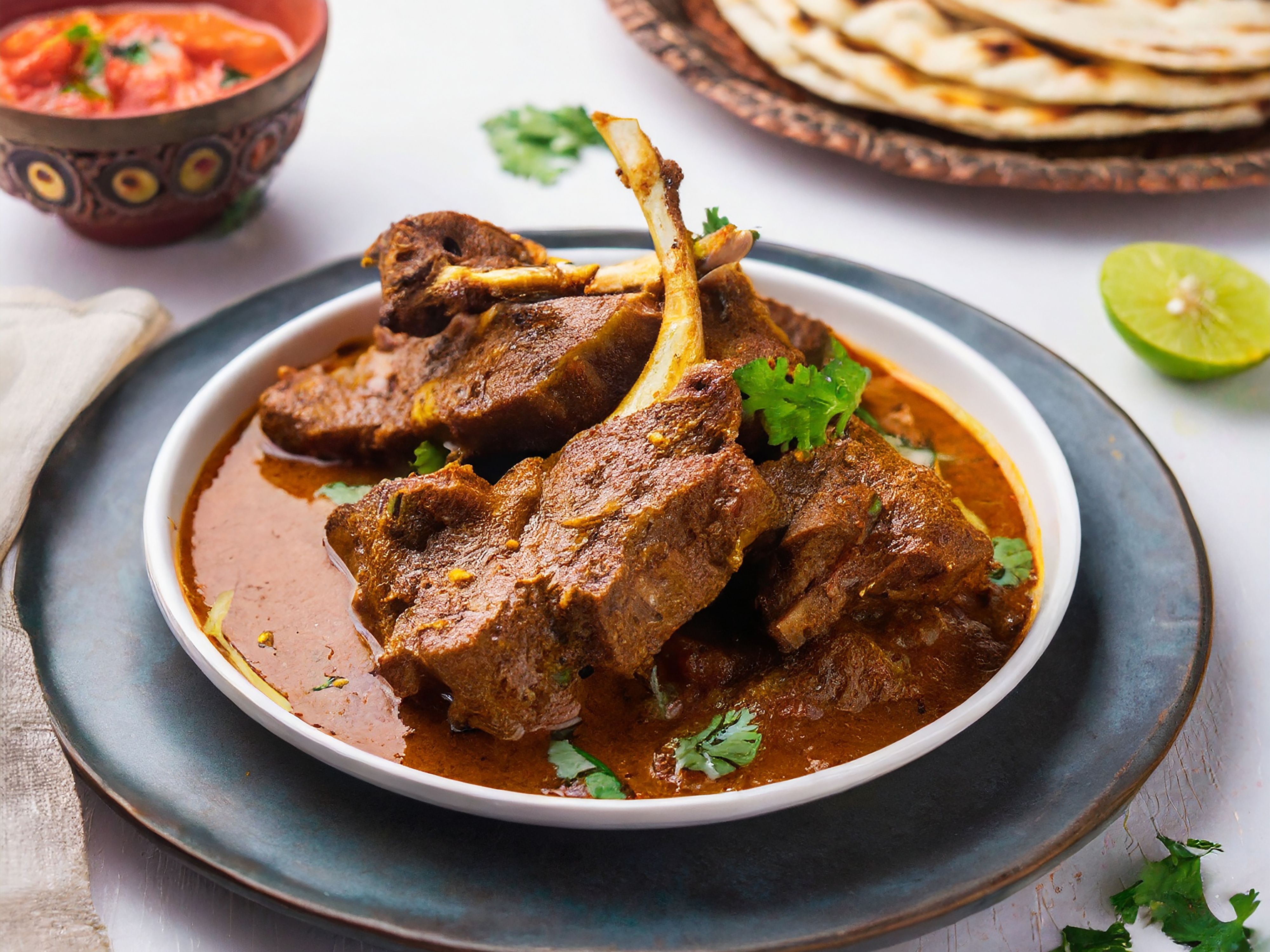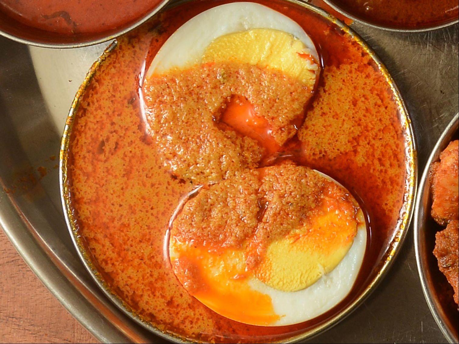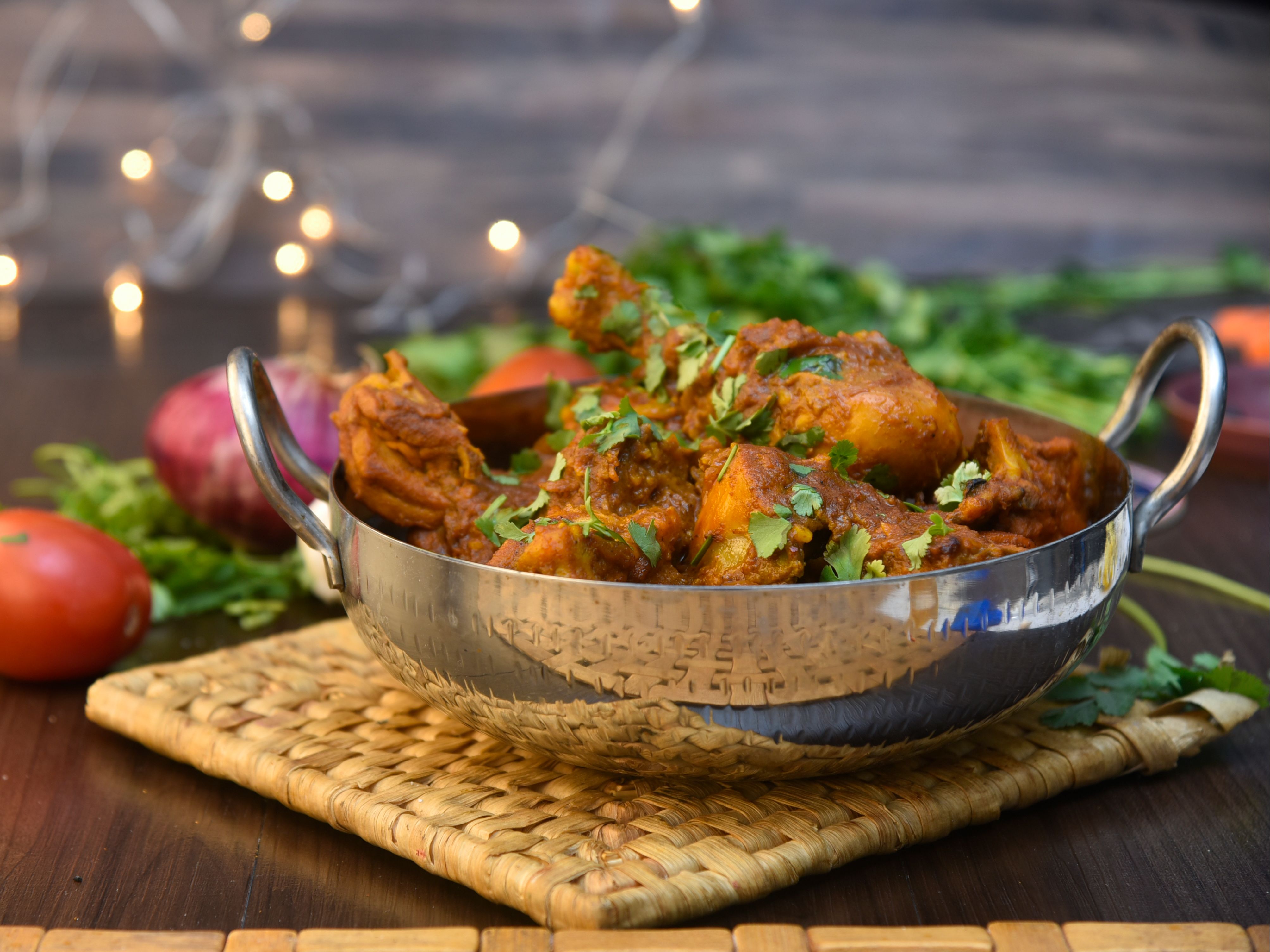 Bone-in Chicken slow cooked with south Indian spices. Served with white rice