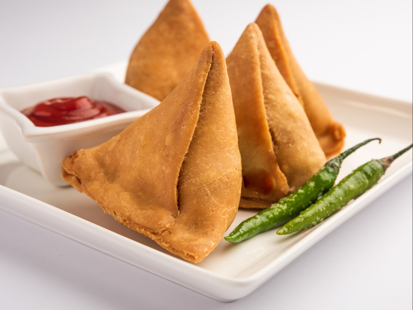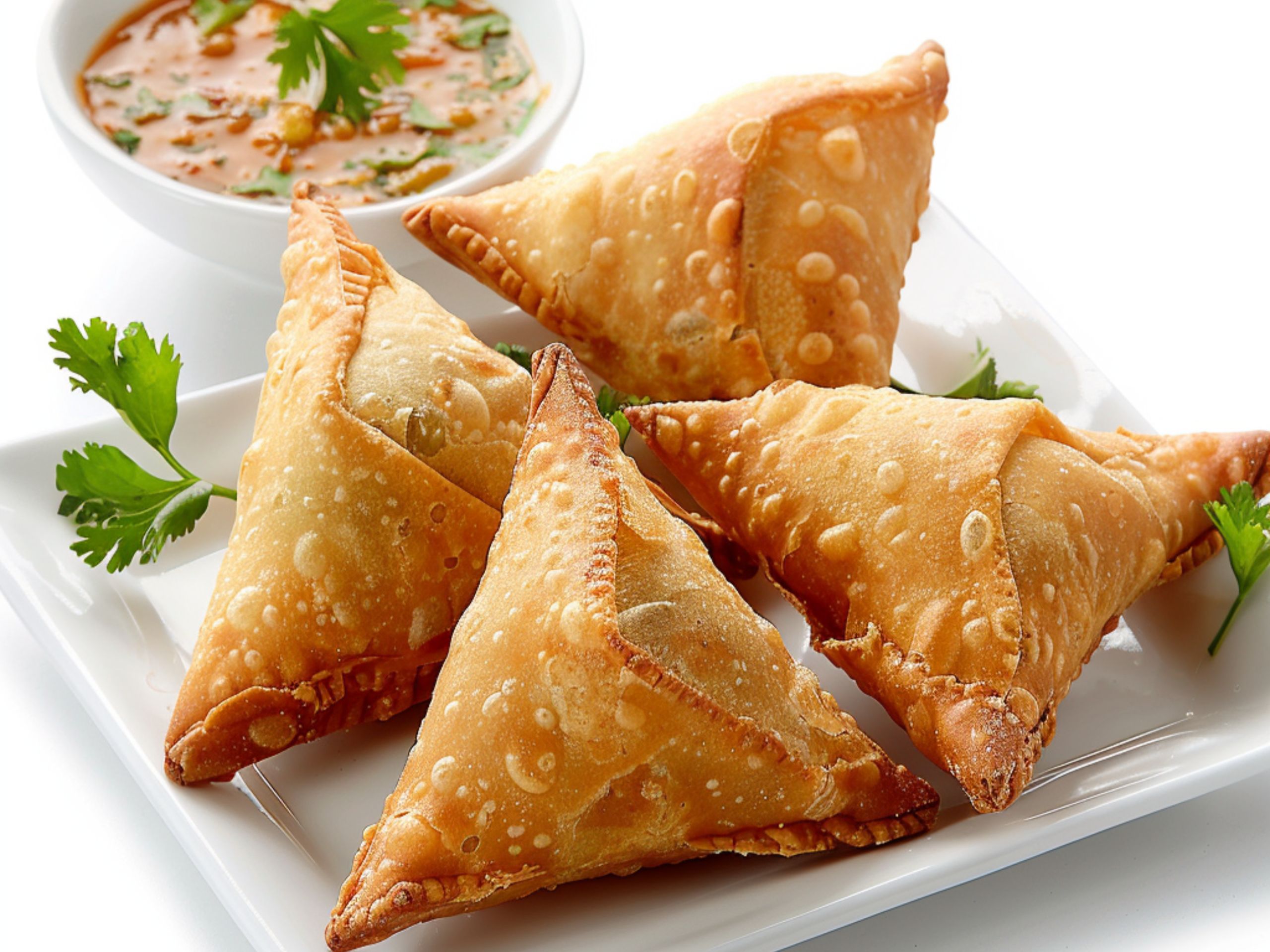 Vegetable samosa with green & sweet chutney