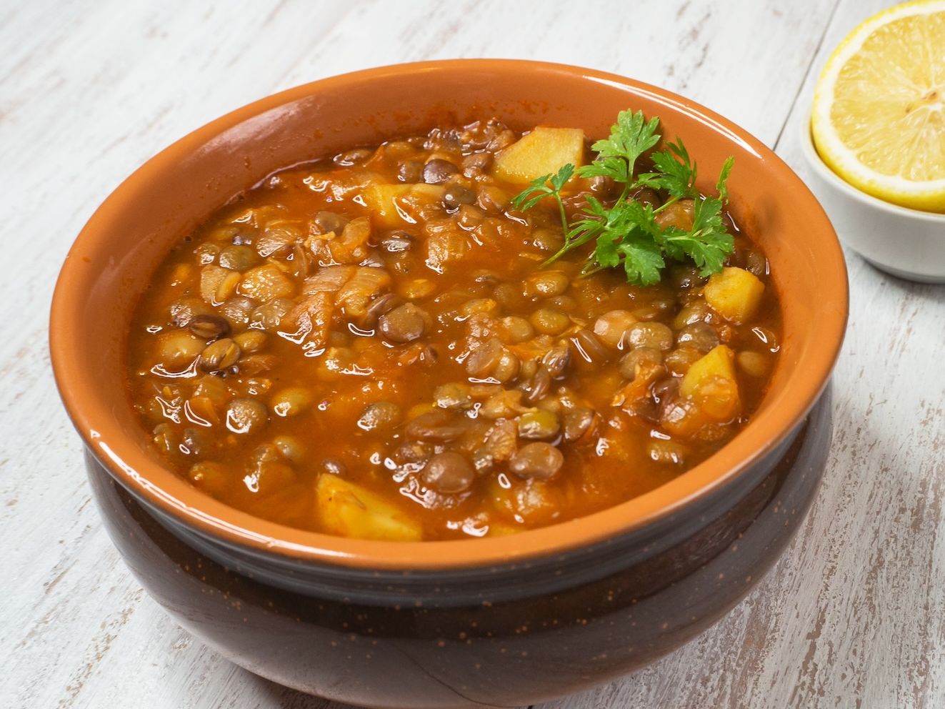 Lentil cooked in special sauce. Served with white rice