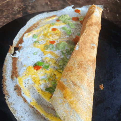 Thin rice and lentil crepe topped with egg spread
